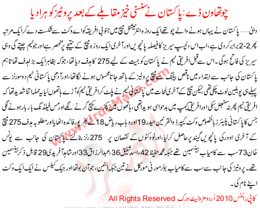4th Odi Pakistan Na Africa Ko Hara Diya