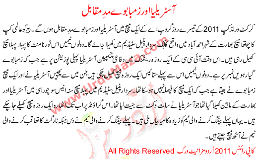 Icc Cricket Worldcup 2011 Australia Vs Zimbabwe Match