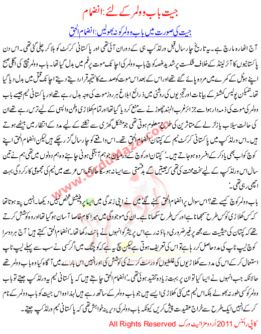 Icc Cricket Worldcup 2011 Do Not Forget Bob Woolmer If Won Says Ex Pakistani Captain Inzamam Ul Haq