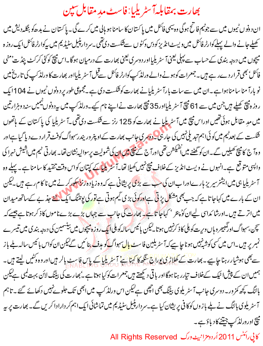 Icc Cricket Worldcup 2011 India Vs Australia Quarterfinal A Match Between Fast Bowling And Slow Bowling