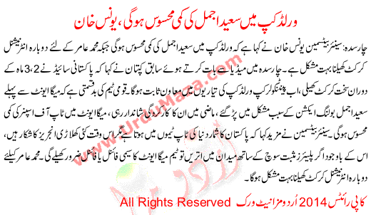 Saeed Ajmal Will Miss In World Cup Younas Khan