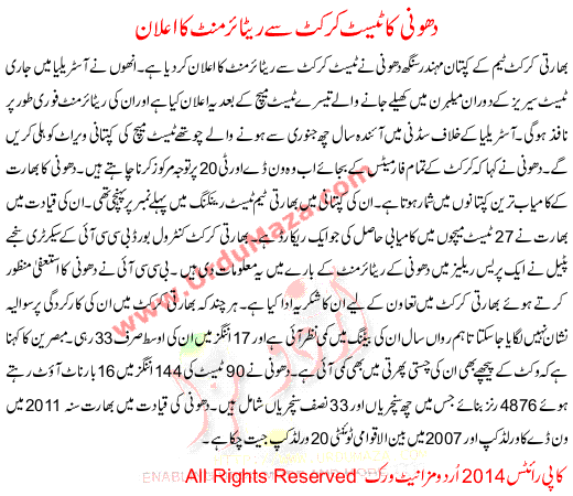 Dhoni Announced Retirement From Test Cricket