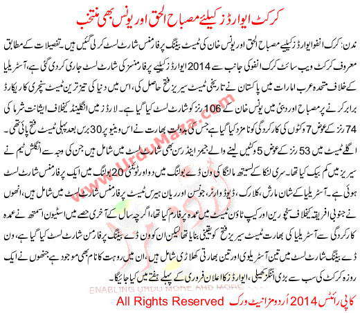 The Name Of Misbah-ul-haq And Younis Select Of Cricket Awards