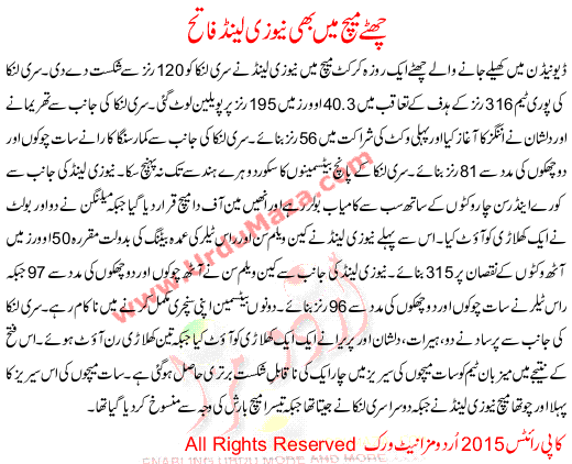 New Zealand Won The Sixth Match