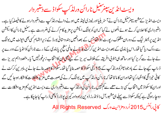 Westundies Spinner Sunil Narine Out Of World Cup Squad