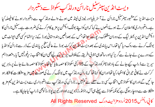 West Indian Spinner Sunil Narine To Withdraw From The World Cup Squad