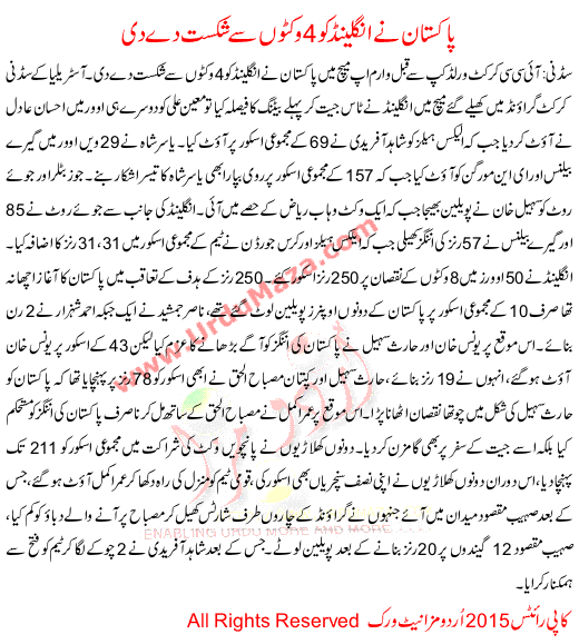 Pakistan Beat England By 4 Wickets