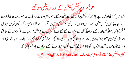 Ahmed Shehzad Injured During A Practice Session