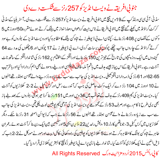 South Africa Beat West Indies By 257 Runs