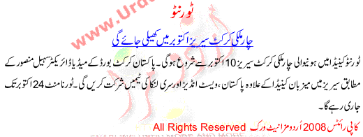 Pakistan Cricket Board Announces Four Nation Cricket Series In Torornto In October 2008