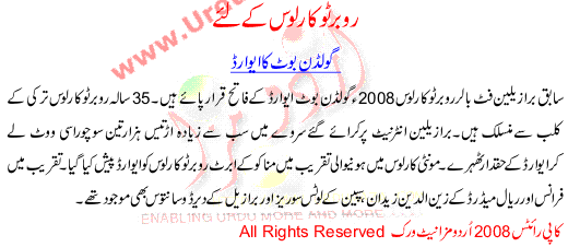 Roberto Carlos Brazilian Soccer International Players Won Golden Boot Award 2008 Held Annualy By Fifa