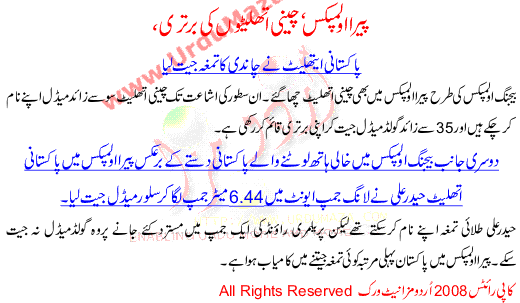 Chinese Athletes Dominated Beijing Paralympics 2008 While Pakistani Athlete Won Silver Medal For His Country