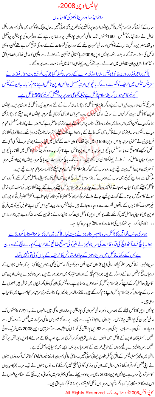 Serena Williams And Roger Federer Won Usopen Tennis Tournament 2008