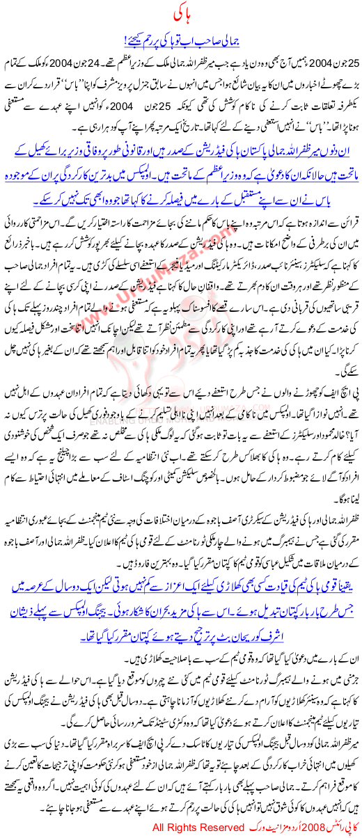 Zafarullah Khan Jamali President Of Pakistan Hockey