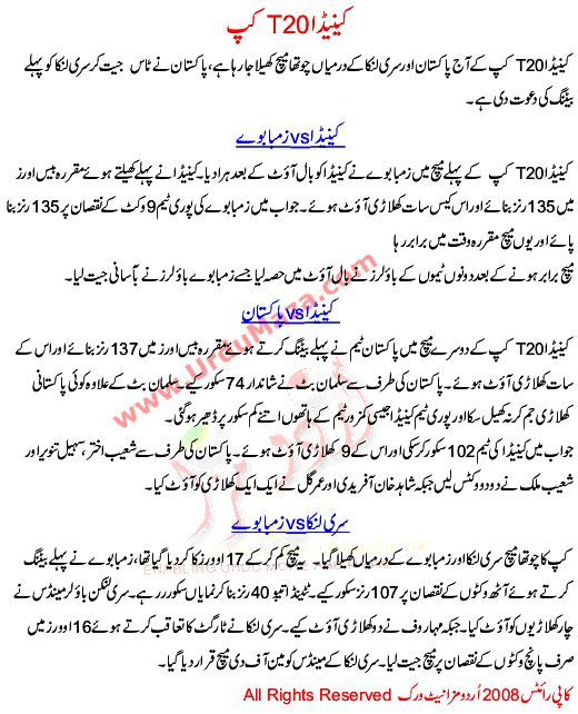 Canada T20 Cricket Cup 2008 Zimbabwe Vs Canada Pakistan Vs Canada, Sri Lanka Vs Canada Matche St