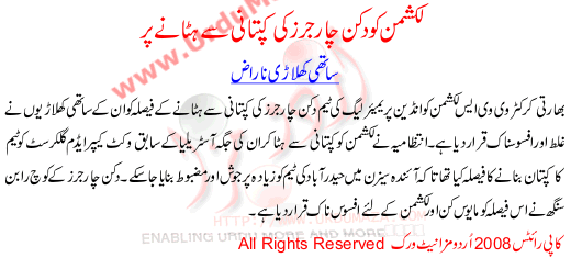Daccan Chargers Team Members Are Not Happy With Laxman Is No More Captain Of Daccan Chargers In Indian Premier League