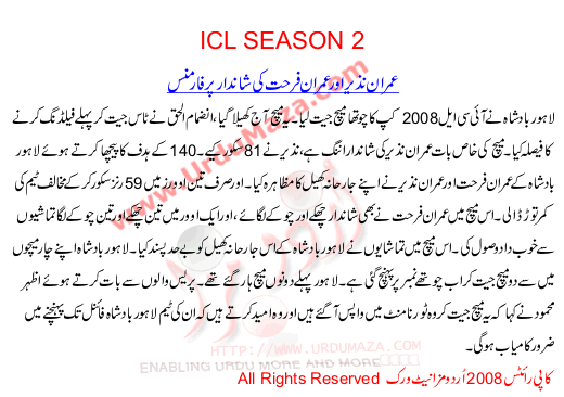 Lahore Badshahs Imran Nazir 83 In 38 Balls Crushed Mumbai Champs In Indian Cricket League Match Played Yesterday