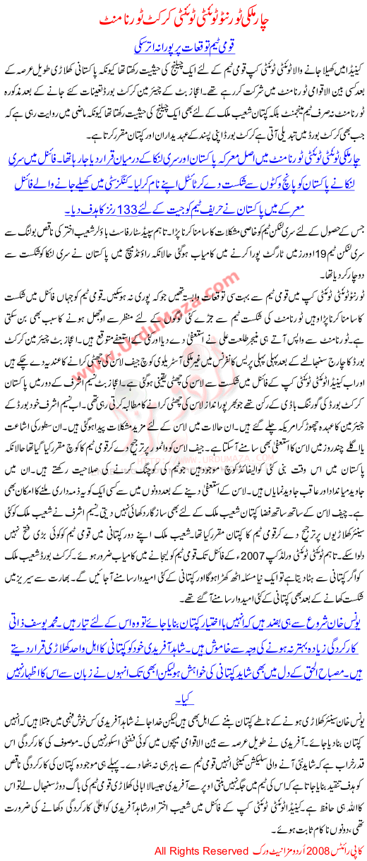 Disappointing Performance Of Pakistan Cricket Team In Four Nation Twenty20 Canada Cup