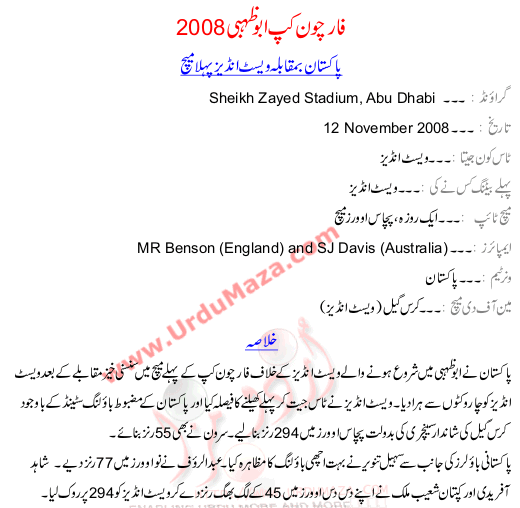 Pakistan Won First Odi Against West Indies In The Opening Match Of Abu Dhabi Fortune Cup 2008