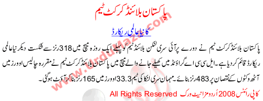 A New World Record Of Pakistan Blind Cricket Team Against Sri Lanka