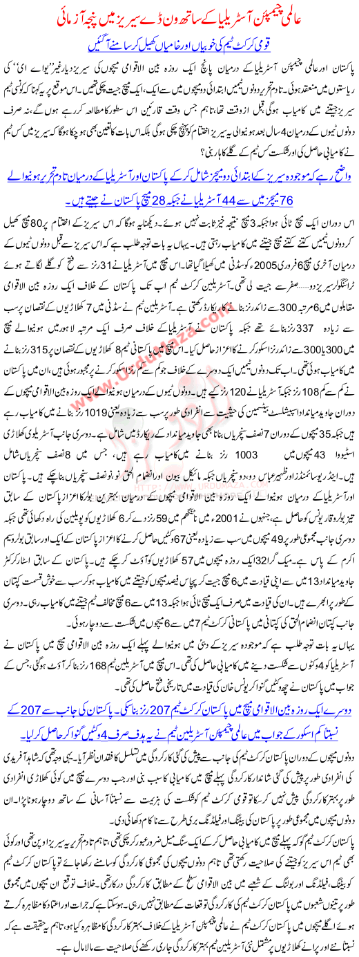 Aalmi Champion Astralia Kay Saath One Day Cricket May Panja Aazmai