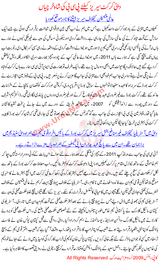 Dubai Cricket Series Kay Liay Pcb Ki Shah Kharchian