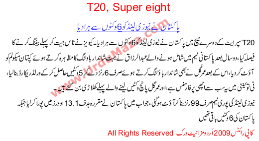Pakistan Defeated Newzealand In Super 8 Round Of T20 Worldcup 2009