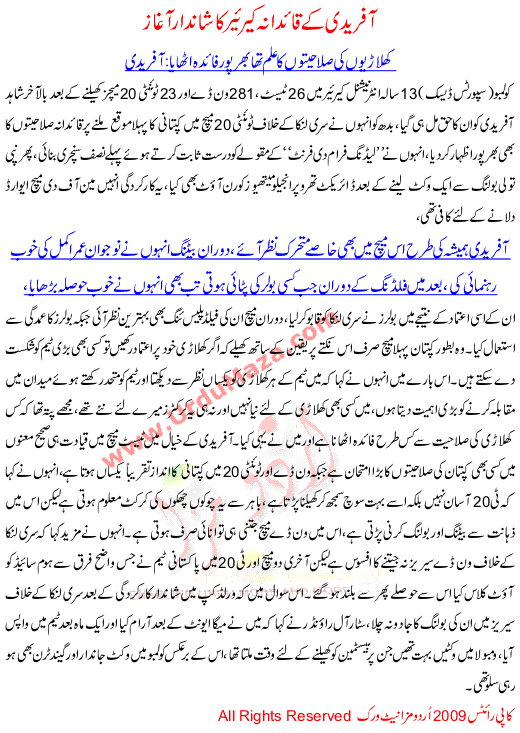 Afridi Kay Quaidana Carier Ka Shandaar Aghaz