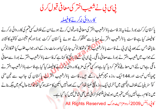 Pcb Nay Shoaib Akhtar Ki Muafi Qabool Kar Li