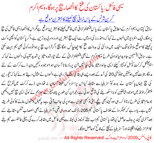 Semi Final;pakistan Ki Fatah Ka Inhisat Pitch Per Ho Ga