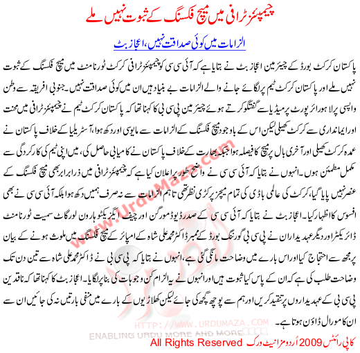 Champions Trophy Ma Match Fixing Kay Saboot Nahi Milay