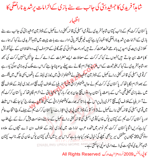 Shahid Afridi Ka Sitay Bazi Per Narazgi Ka Izhaar