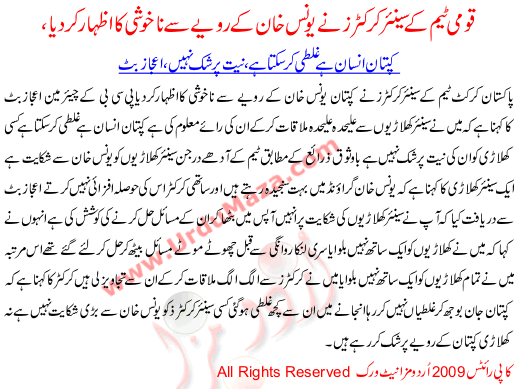 Qomi Team Kay Senior Crickters Nay Younis Khan Kay Rwaiye Say Nakhushi Ka Izhar Kar Diya