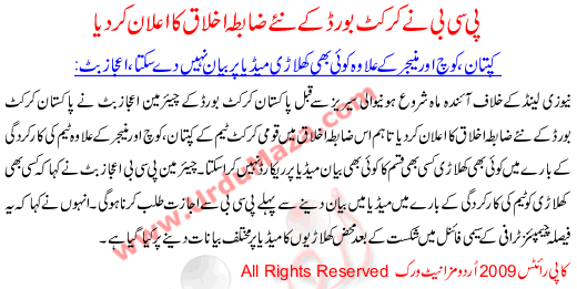 Pcb Nay Cricket Board Kay Naye Zabta E Ikhlak Ka Ilan Kar Diya