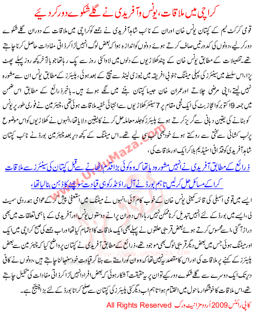 Karachi Ma Mulakat,younis O Afridi Na Gilay Shikway Dor Kar Diay
