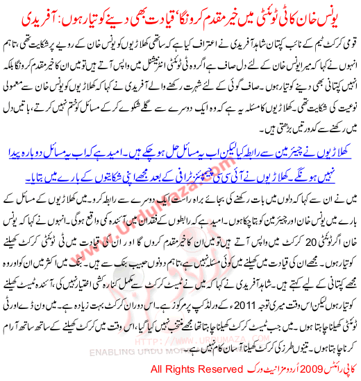 Younis Ka T20 Ma Khair Makdam Karon Ga,afridi