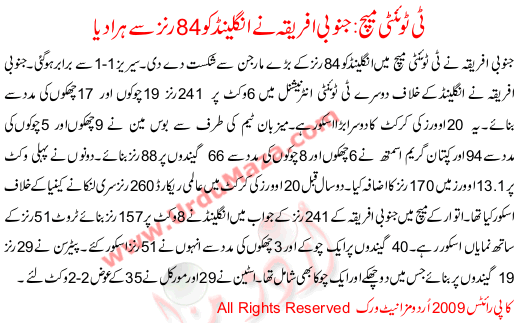 T20 South Afrika Na England Ko 84 Ranz Sa Hara Diya