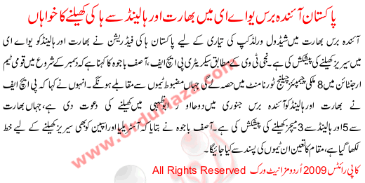 Pakistan Wishes To Play Against India And Holland Hockey Teams Next Year