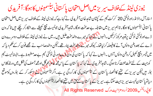 New Zealand Series Will Be Actually A Test Of Pakistani Batsmen Says Afridi