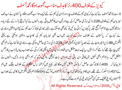Target Of 400 Runs Against New Zealand In Wallington Test Will Be More Than Enough Says Muhammad Asif