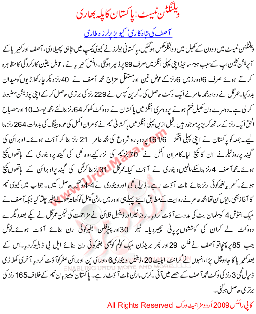 Wallington Test Pakistan On The Top Due To Aggressive Bowling Of Muhammad Asif