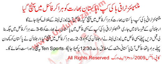 Pakistan Reached Final In Champions Trophy Hockey Tournament By Beating India