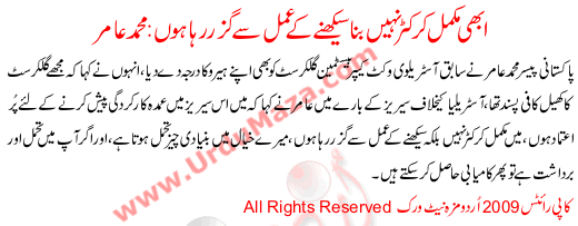 I Am Not A Complete Cricketer Yet I Am Still Learning Said Young Faster Bowler Muhammad Aamir