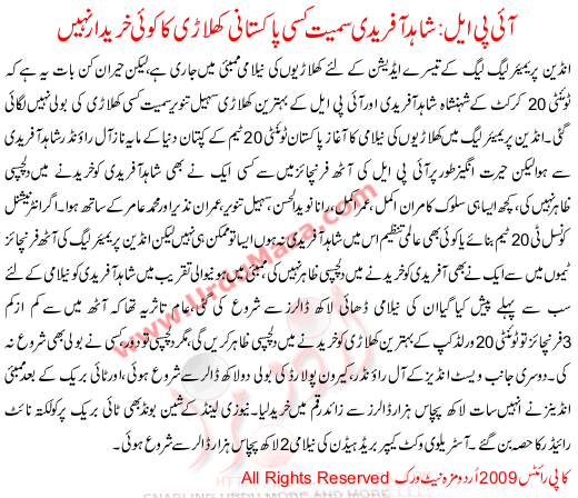 None Of Ipl Franchises Bid For Any Pakistani Cricketer Including Shahid Khan Afridi