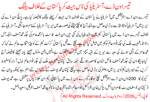 Third One Day Internation Australia Decided To Bat First After Winning Toss