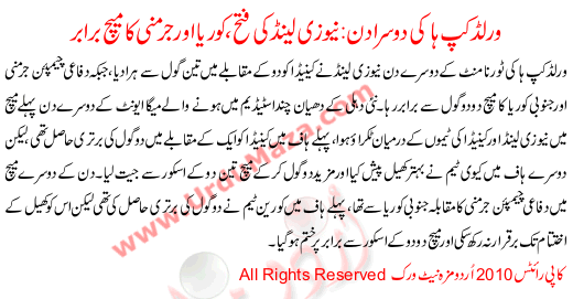 Hockey Worldcup 2nd Day Newzealand Beat Canada While Germany Vs Korea Was A Draw