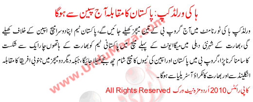 Hockey Worldcup 2010 Pakistan Will Face Spain Today