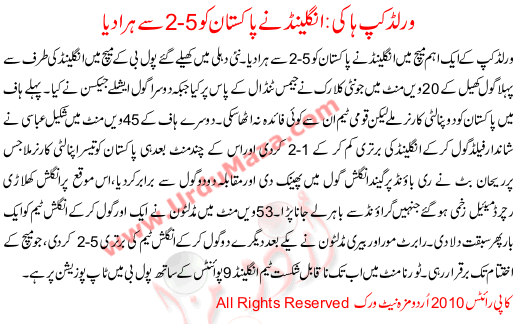 England Thrashed Pakistan Hockey Team By 5 To 2 Goals
