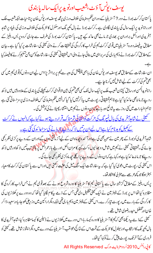 Yousaf Aur Younis Out Shoaib Aur Naveed Pr 1 Saal Pabandi