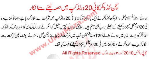 Indian Super Cricketer Sachin Tendulkar Refused To Play In Worldcup T20 2010